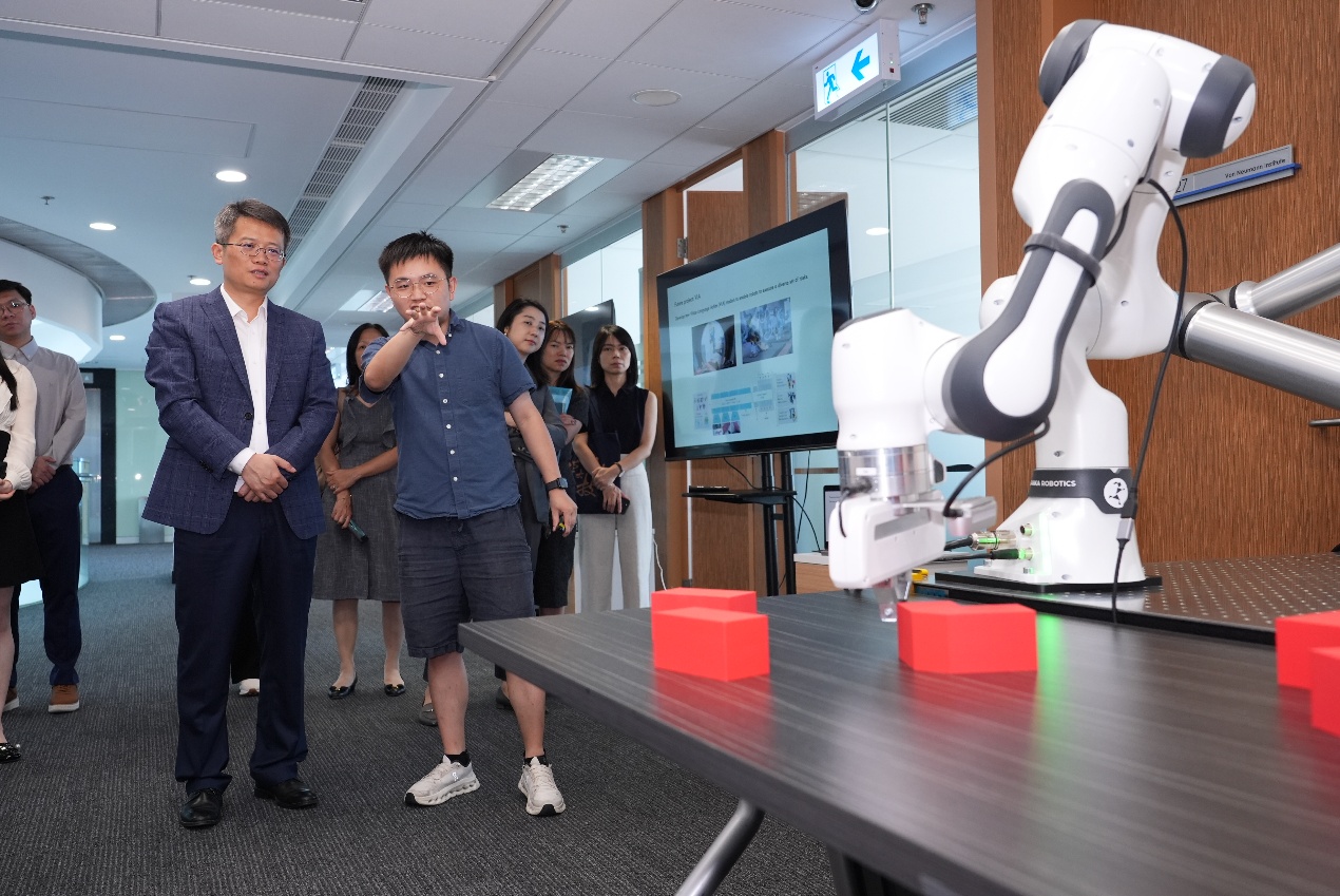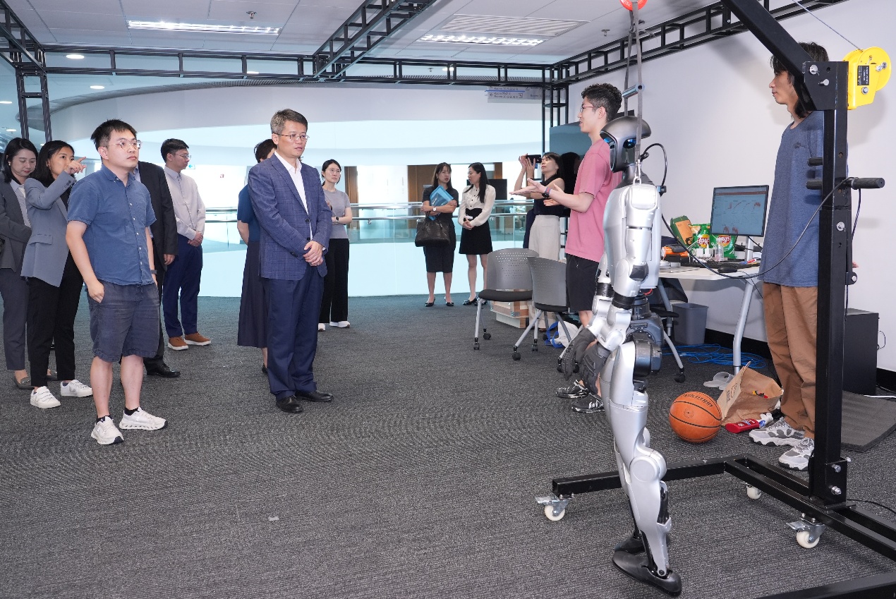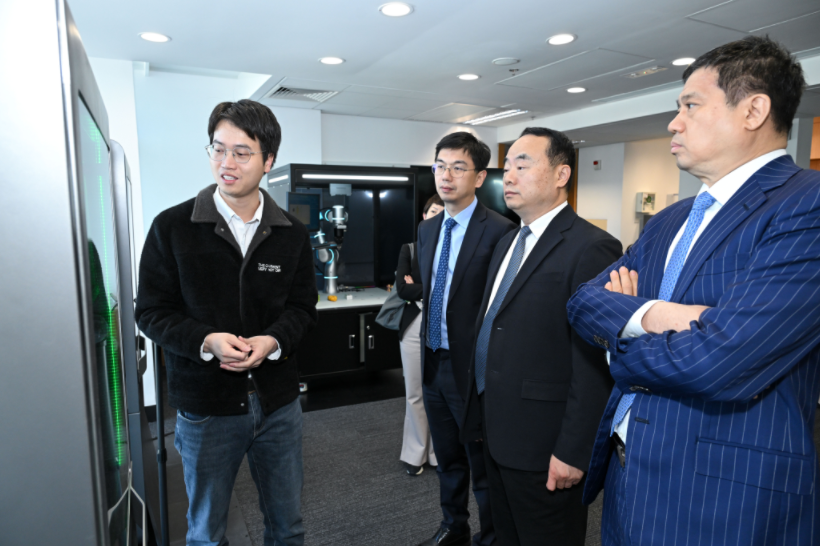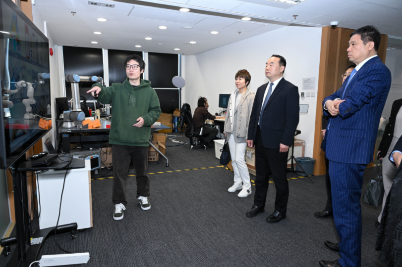 交通銀行(香港)董事長肖霆先生率領訪問團蒞臨香港科技大學馮諾依曼研究院,進行交流與參觀。研究院教授團隊向來賓介紹了人工智能在具身智能、商業應用及智能工業等領域的最新研究成果與應用場景。
